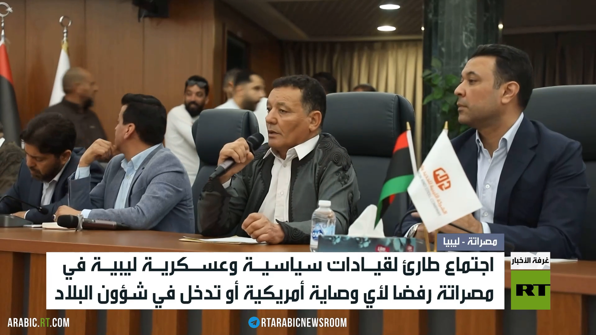 شهدت مدينة مصراتة الليبية اجتماعا طارئا ضم قيادات سياسية وعسكرية واجتماعية بارزة، وذلك لإعلان موقف موحد برفض التدخل والوصاية الأمريكية.